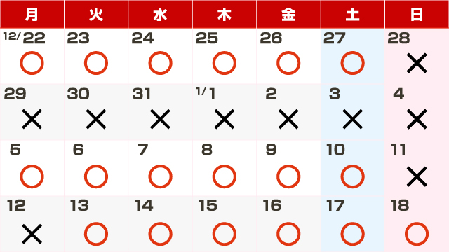 2025~2026 年末年始スケジュール